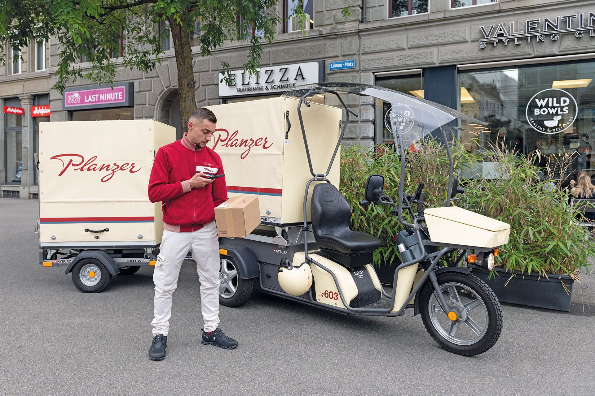 The sustainable delivery of cargo and parcels on the last mile in urban areas and city centres is nothing new. What is new, however, is our pilot project with Kyburz, the Zurich market leader for sustainable mobility solutions. In summer 2023, we spent a month operating an electric three-wheeler and trailer from Kyburz in District 1 in Zurich. The initial feedback from those in-volved is clear: fantastic!